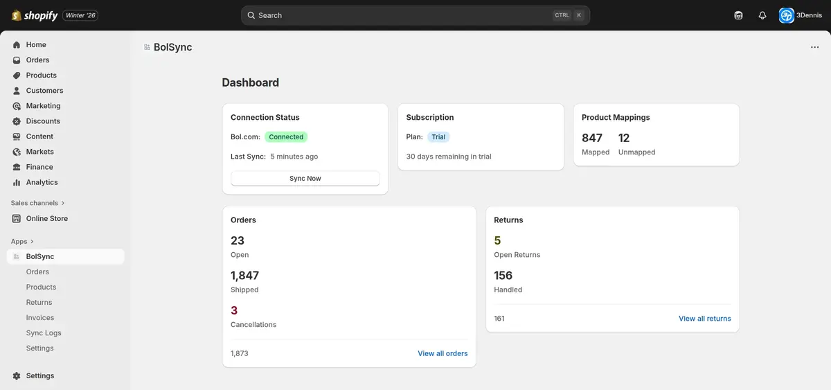 Beheer alles vanuit Shopify - je hoeft nooit meer naar het Bol verkoopportaal!